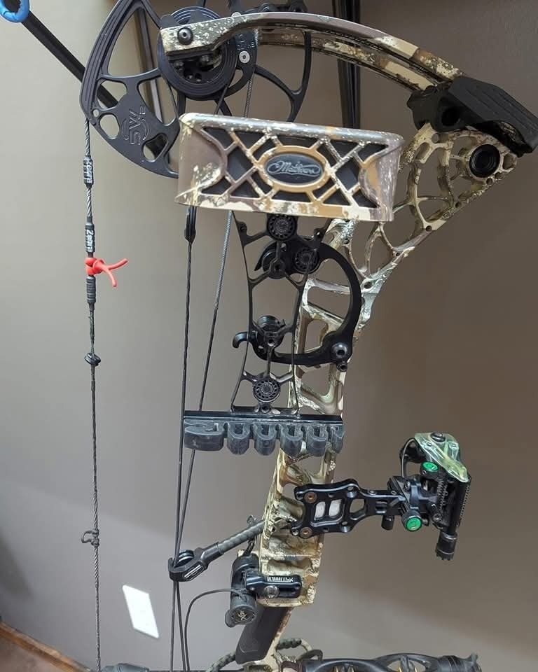 29.5” Draw, 70lb. IQ 7 pin sight, QAD HDX, Mathews 5 arrow quiver, Trophy ridge stabilizer with adjustable weights.